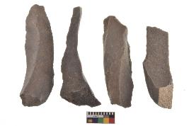| Description / विवरण | There are n-4 of utilized flake cores. There are multidirectional irregular dominant scar pattern on both dorsal and ventral face of the cores. |
