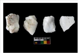 | Description / विवरण | Specimen of cores with weathered cortex and several broad fluted marks. Some of them are irregular in shape, whereas some are tapering at one end. |