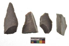 | Description / विवरण | There are n-4 of utilized flake cores. There are multidirectional irregular dominant scar pattern on both dorsal and ventral face of the cores. |