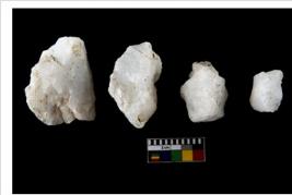 | Description / विवरण | Specimen of cores with weathered cortex and several broad fluted marks. Some of them are irregular in shape, whereas some are tapering at one end. |