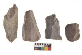 | Description / विवरण | There are n-4 of utilized flake cores. There are multidirectional irregular dominant scar pattern on both dorsal and ventral face of the cores. |