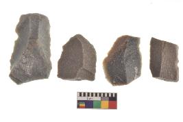 | Description / विवरण | There are n-4 of utilized flake cores. There are multidirectional irregular dominant scar pattern on both dorsal and ventral face of the cores. |