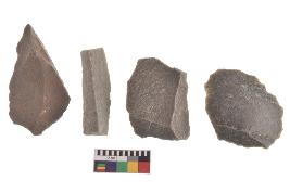 | Description / विवरण | There are n-4 of utilized flake cores. There are multidirectional irregular dominant scar pattern on both dorsal and ventral face of the cores. |