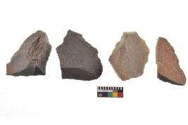 | Description / विवरण | There are n-4 of utilized flake cores. There are multidirectional irregular dominant scar pattern on both dorsal and ventral face of the cores. |