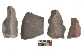 | Description / विवरण | There are n-4 of utilized flake cores. There are multidirectional irregular dominant scar pattern on both dorsal and ventral face of the cores. |