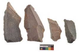 | Description / विवरण | There are n-4 of utilized flake cores. There are multidirectional irregular dominant scar pattern on both dorsal and ventral face of the cores. |