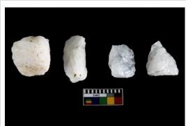 | Description / विवरण | Specimen of cores with weathered cortex and several broad fluted marks. Some of them are irregular in shape, whereas some are tapering at one end. |