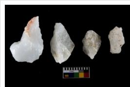 | Description / विवरण | Specimen of cores with weathered cortex and several broad fluted marks. Some of them are irregular in shape, whereas some are tapering at one end. |