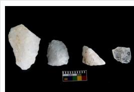 | Description / विवरण | Specimen of cores with weathered cortex and several broad fluted marks. Some of them are irregular in shape, whereas some are tapering at one end. |