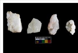 | Description / विवरण | Specimen of cores with weathered cortex and several broad fluted marks. Some of them are irregular in shape, whereas some are tapering at one end. |