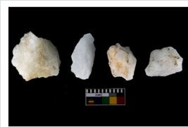 | Description / विवरण | Specimen of cores with weathered cortex and several broad fluted marks. Some of them are irregular in shape, whereas some are tapering at one end. |