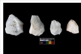 | Description / विवरण | Specimen of cores with weathered cortex and several broad fluted marks. Some of them are irregular in shape, whereas some are tapering at one end. |