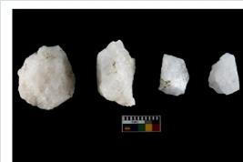 | Description / विवरण | Specimen of cores with weathered cortex and several broad fluted marks. Some of them are irregular in shape, whereas some are tapering at one end. |