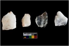 | Description / विवरण | Specimen of cores with weathered cortex and several broad fluted marks. Some of them are irregular in shape, whereas some are tapering at one end. |
