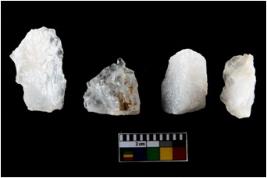 | Description / विवरण | Specimen of cores with weathered cortex and several broad fluted marks. Some of them are irregular in shape, whereas some are tapering at one end. |