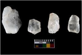 | Description / विवरण | Specimen of cores with weathered cortex and several broad fluted marks. Some of them are irregular in shape, whereas some are tapering at one end. |