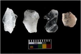 | Description / विवरण | Specimen of cores with weathered cortex and several broad fluted marks. Some of them are irregular in shape, whereas some are tapering at one end. |