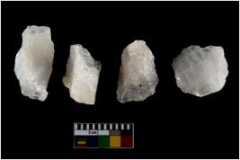 | Description / विवरण | Specimen of cores with weathered cortex and several broad fluted marks. Some of them are irregular in shape, whereas some are tapering at one end. |
