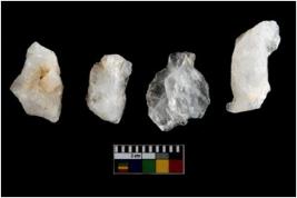 | Description / विवरण | Specimen of cores with weathered cortex and several broad fluted marks. Some of them are irregular in shape, whereas some are tapering at one end. |