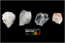 | Description / विवरण | Specimen of cores with weathered cortex and several broad fluted marks. Some of them are irregular in shape, whereas some are tapering at one end. |