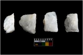 | Description / विवरण | Specimen of cores with weathered cortex and several broad fluted marks. Some of them are irregular in shape, whereas some are tapering at one end. |