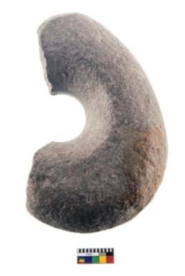 | Description / विवरण | A partially broken specimen of an oval shaped rubber stone with oval section. |