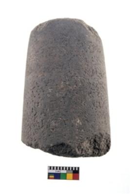 | Description / विवरण | A partially broken specimen of a oval shaped Mueller stone with oval section and concave end which is slightly tapered. |