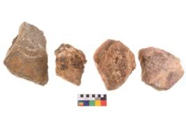 | Description / विवरण | Specimen of fluted cores having few broad fluted marks indicating the detached blades from it. All are uneven in shape and size. |