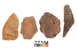 | Description / विवरण | Specimen of fluted cores having few broad fluted marks indicating the detached blades from it. All are uneven in shape and size. |
