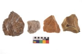| Description / विवरण | Specimen of fluted cores having few broad fluted marks indicating the detached blades from it. All are uneven in shape and size. |