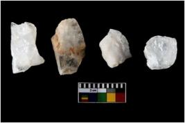 | Description / विवरण | Specimen of cores with weathered cortex and several broad fluted marks. Some of them are irregular in shape, whereas some are tapering at one end. |