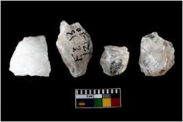 | Description / विवरण | Specimen of cores with weathered cortex and several broad fluted marks. Some of them are irregular in shape, whereas some are tapering at one end. |