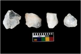 | Description / विवरण | Specimen of cores with weathered cortex and several broad fluted marks. Some of them are irregular in shape, whereas some are tapering at one end. |