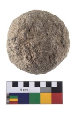 | Description / विवरण | A Hammer stone roughly rounded in shape with grounded edges. |
