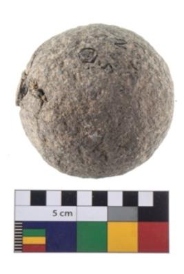 | Description / विवरण | A Hammer stone roughly rounded in shape with grounded edges. |