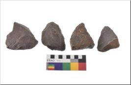 | Description / विवरण | There are n-4 of utilized flake cores. There are multidirectional irregular dominant scar pattern on both dorsal and ventral face of the cores. |