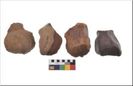 | Description / विवरण | There are n-4 of utilized flake cores. There are multidirectional irregular dominant scar pattern on both dorsal and ventral face of the cores. |
