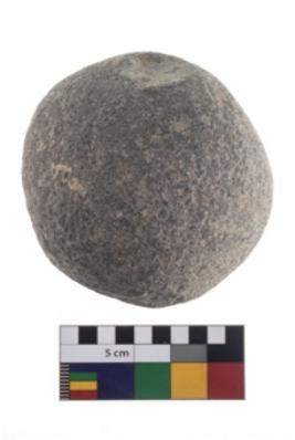 | Description / विवरण | A Hammer stone roughly rounded in shape with grounded edges. |