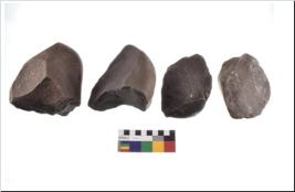 | Description / विवरण | There are n-4 of utilized flake cores. There are multidirectional irregular dominant scar pattern on both dorsal and ventral face of the cores. |