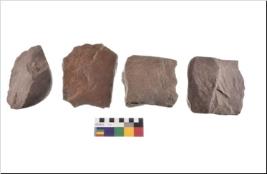 | Description / विवरण | There are n-4 of utilized flake cores. There are multidirectional irregular dominant scar pattern on both dorsal and ventral face of the cores. |