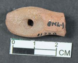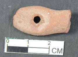 | Description / विवरण | A fragmentary plough having cylindrical body with round flatened perforated top. Its colour is dull red and surface is rough. |
