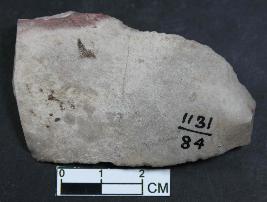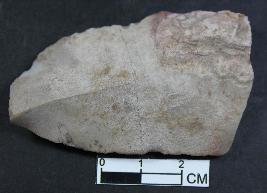 | Description / विवरण | A standard-sized flake tool having one dorsal ridge. Its off white in colour and smooth surface. |