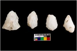 | Description / विवरण | Specimen of cores with weathered cortex and few broad fluted marks. They are irregular in shape. Some of them are tapering at one end. |