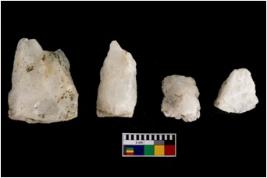 | Description / विवरण | Specimen of cores with weathered cortex and few broad fluted marks. They are irregular in shape. Some of them are tapering at one end. |