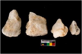 | Description / विवरण | Specimen of a cores with several broad fluted marks. The reverse bulb and platform can be seen. The flake scars are seen on all sides. |