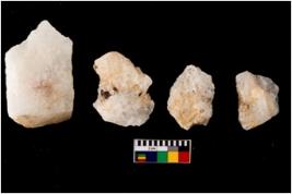| Description / विवरण | Specimen of a cores with several broad fluted marks. Some of them are tapering at one end. |