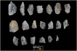 | Description / विवरण | There are 20 flake objects; some of the flakes have a sharp pen point. The ridges on the sides of the flakes are visible. Traces of retouching is noticed. |