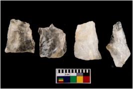 | Description / विवरण | Specimen of a cores with few broad fluted marks. Some of them are tapering at one end. Few are with sharp edges. |
