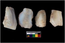 | Description / विवरण | There are n-4 of utilized cores. There are multidirectional irregular dominant scar pattern on both dorsal and ventral face of the cores. |
