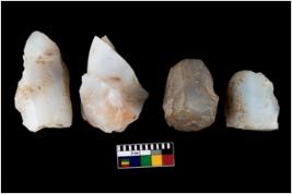 | Description / विवरण | There are n-4 of utilized cores. Out of them 1 is made up of Chalcedony, 1 is made up of Agate and 2 are made up of Chert. There are multidirectional irregular dominant scar pattern on both dorsal and ventral face of the cores. |